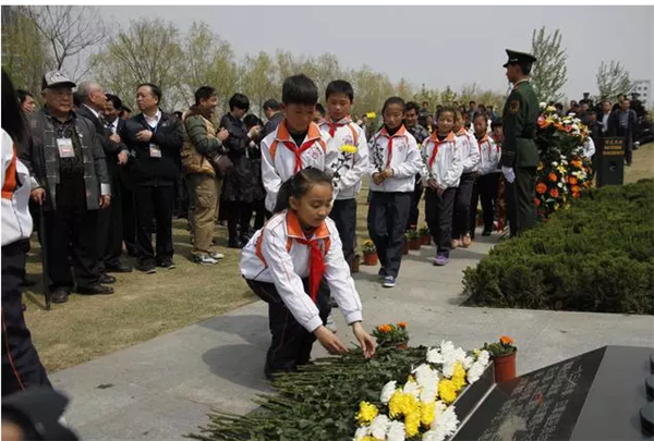 学生在台儿庄大战纪念馆祭奠