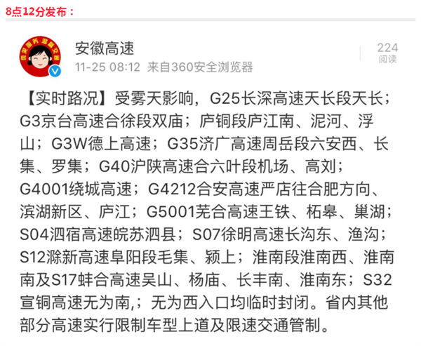 阜阳交警7点11分发布: