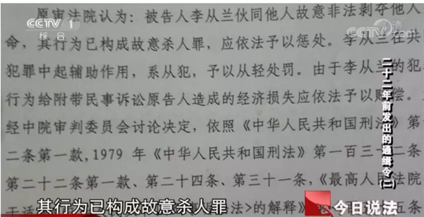 2013年底,因涉嫌故意杀人罪,李丛兰被起诉到了法院。阜阳市中级人民法院认定李丛兰伙同他人故意剥夺他人生命,其行为已构成故意杀人罪。但在共同犯罪中起辅助作用系从犯,判处有期徒刑15年并赔偿受害人家属23903元。