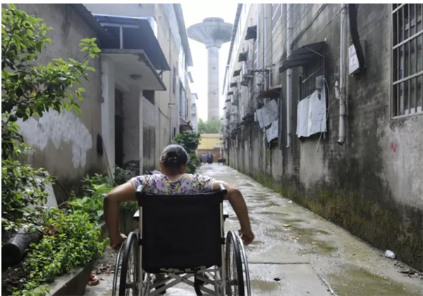 妻子韦萍每天都是靠轮椅代步往返住处