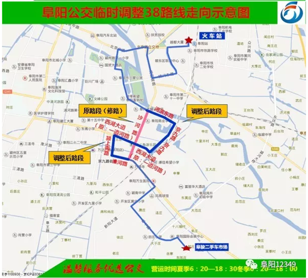 阜阳14路、15路、38路、39路、56路公交线路调整的公告