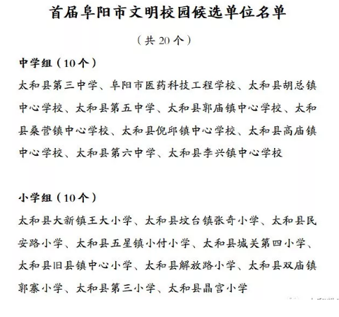 根据市文明办《关于开展第一届阜阳市文明校园评选活动的通知》(阜文明办﹝2018﹞37号)精神,全县各乡镇及县直有关单位按通知要求广泛宣传发动、积极组织申报、严格初审把关;在各乡镇各单位推荐申报的基础上